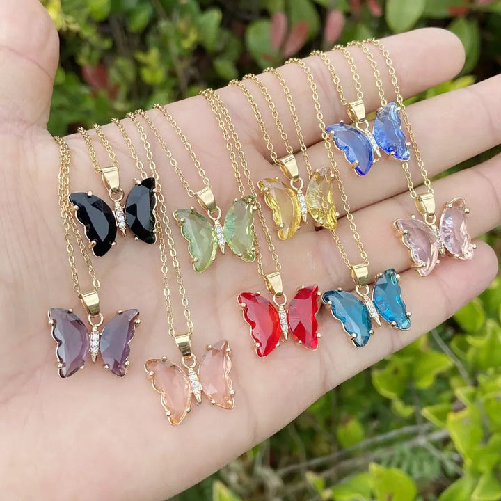 Elevate your accessory game with our stunning Colorful Crystal Butterfly Pendant Necklace – a perfect blend of elegance, charm, and modern style. Featuring a beautifully crafted butterfly-shaped crystal in a variety of vibrant colors, each pendant is delicately set in a gold-tone frame and suspended from a sleek, lightweight chain.