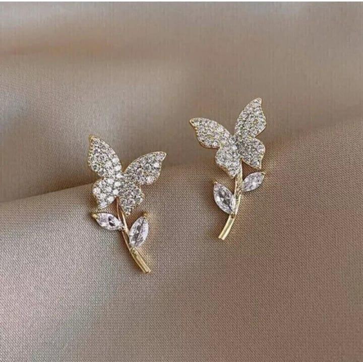 Butterfly Design Gold Plated Zircon Earrings