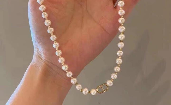 pearl necklace women's light luxury necklace high-end design sense niche sweater 2023 new cd clavicle choker