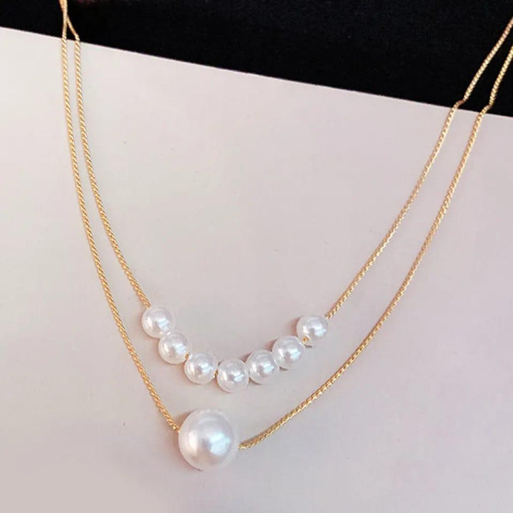 Tocona Factory Fashion Gold Color Necklace Women Ladies White Pearl Multi-layer Chain Choker AccessoriesC07108